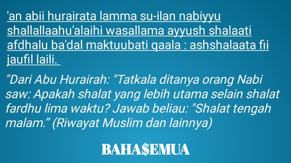 “Dan pada sebagian malam, lakukanlah sholat tahajud (sebagai suatu ibadah) tambahan bagimu: mudah-mudahan Tuhanmu mengangkatmu ke tempat yang terpuji” (QS. Al Isra : 79)